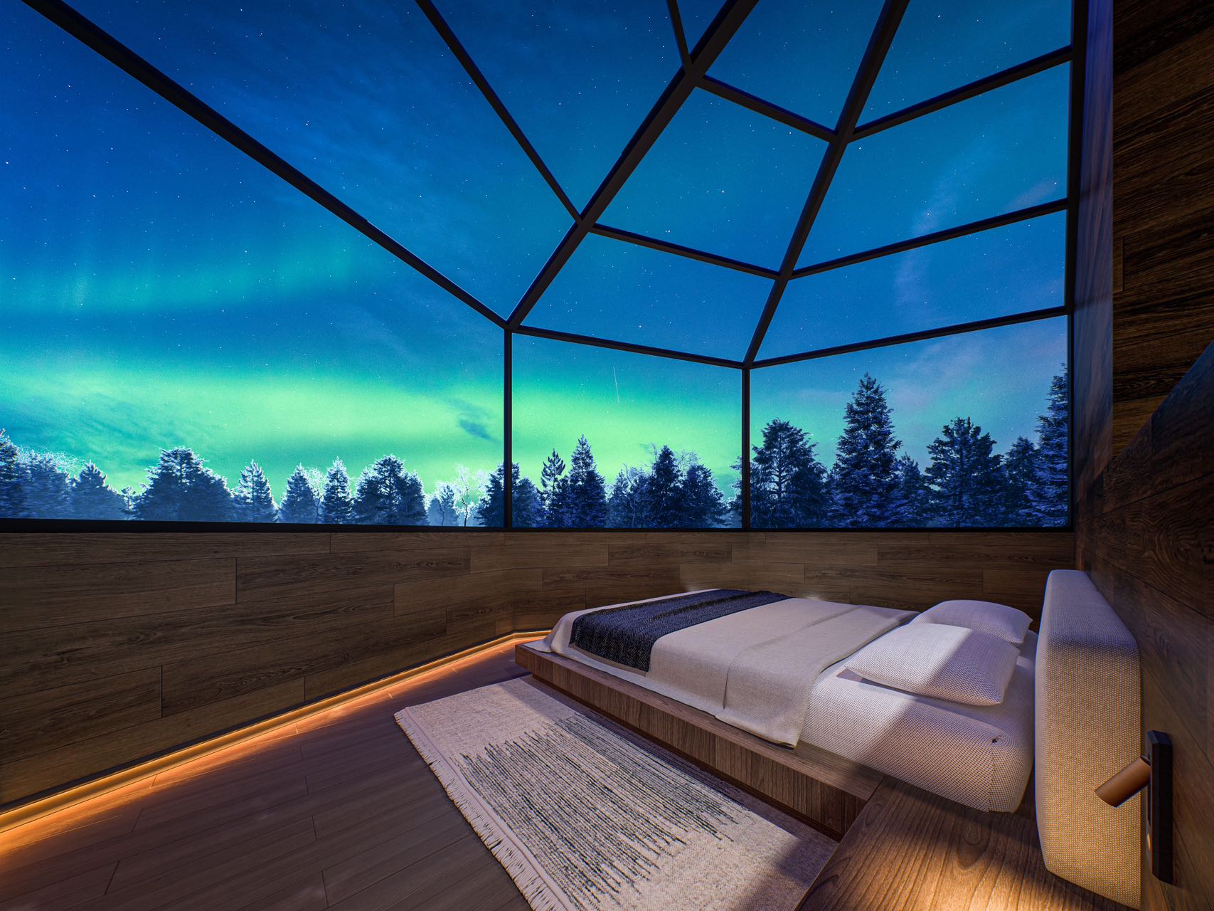 The best choice for chasing the aurora: up to 3 aurora observations, 1 aurora observation in a cabin, 1 aurora observation in the wilderness, and an exclusive 1-night stay in a planet cabin.